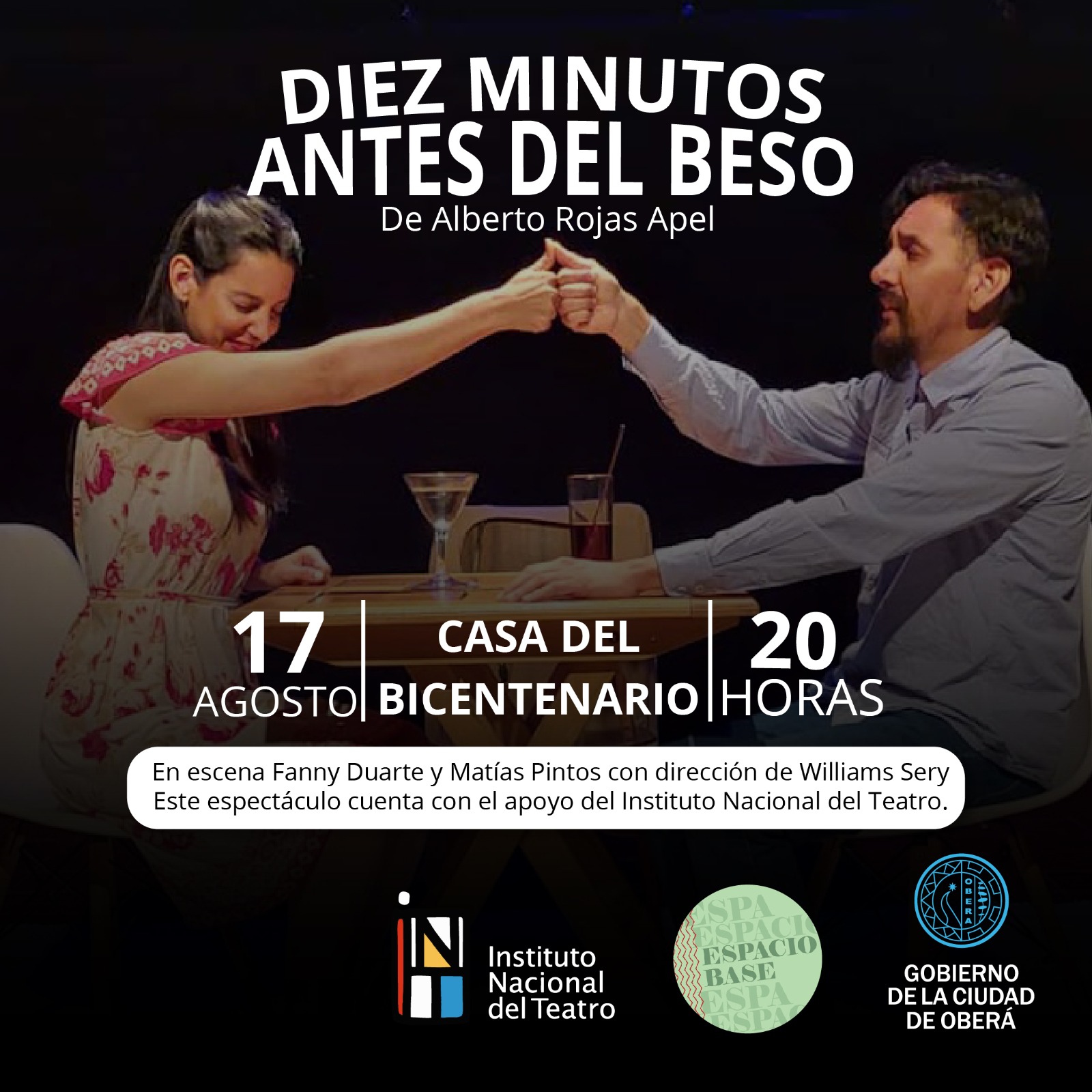 En escena estarán, Fanny Duarte y Matías Pintos dirigidos por Williams Sery. Esta obra fue seleccionada este año para participar de la 10ª edición del Festival Internacional de Teatro Encarnación.