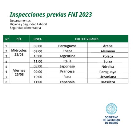 El Gobierno de la Ciudad de Oberá informa que, los Departamentos de Higiene y Seguridad Laboral y Seguridad Alimentaria realizarán inspecciones previas a la Fiesta Nacional del Inmigrante