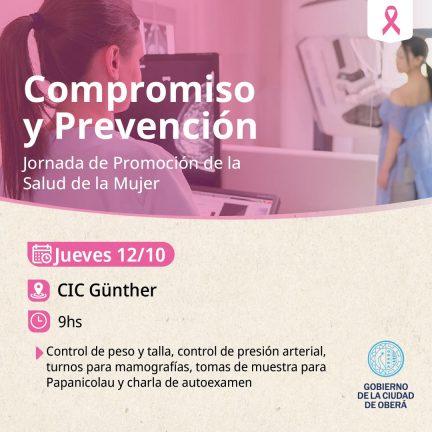 El próximo jueves 12 se llevará adelante la jornada de Promoción de la Salud de la Mujer a partir de las 9hs en el CIC de Günther.