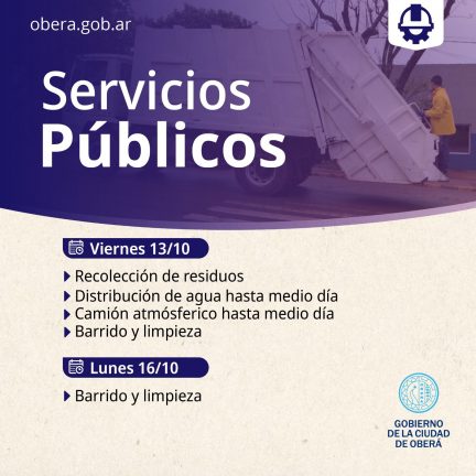 Este es el cronograma de los servicios públicos para este feriado con fines turísticos del 13 y 16 de octubre.