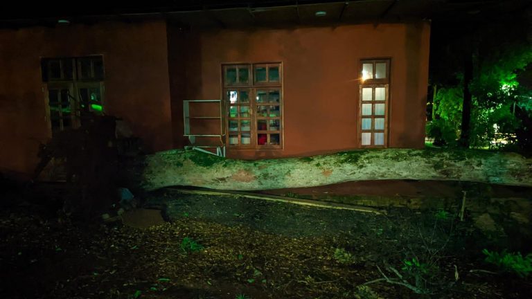 Tras realizar recorridas en el lugar constatando la caída de un árbol en el sector posterior de la casa Polaca, lo que provocó daños en la parte delantera – capot, óptica- de un automóvil marca Fiat, modelo Cronos, que se encontraba estacionado en el lugar y pertenecería a integrantes de la colectividad.