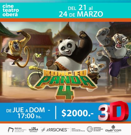 Kung Fu Panda 4 – 3D – $2000 – de jueves a domingo – 17hs – T/P (Todo Público)