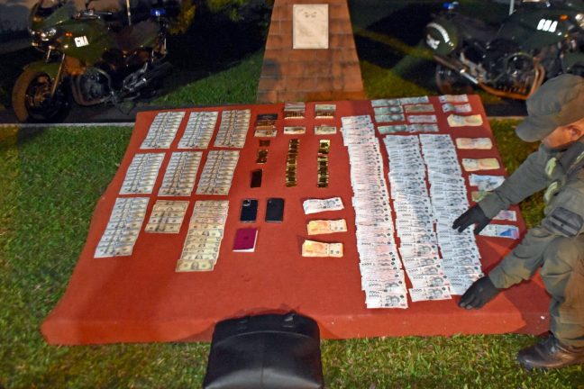 El conteo del efectivo resultó en $ 1.203.880 en moneda nacional, $ 7.761 dólares estadounidenses $ 441.000 guaraníes sin documentación que justificara su legar origen o tenencia. Además, las piezas de oro comprendían 3 lingotes de un kg cada uno, 3 lingotes de 100 grs cada uno y 6 láminas del mismo material, con un pesaje total de 3,546 kg, carente de documentación que acreditara su procedencia, adquisición o declaración ante la Administración Federal de Ingresos Públicos, encontrándose en infracción al Artículo Nº 977 de la Ley de “Código Aduanero”.