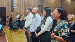 Durante el mismo el Pastor Carlos Monzón dirigió el culto cediendo un espacio al Intendente Ab. Pablo Hassan que agradeció por la invitación y por compartir este aniversario que es tan importante para los obereños, también destacó la participación de los jóvenes, que día a día practican su fe ayudando a más personas.