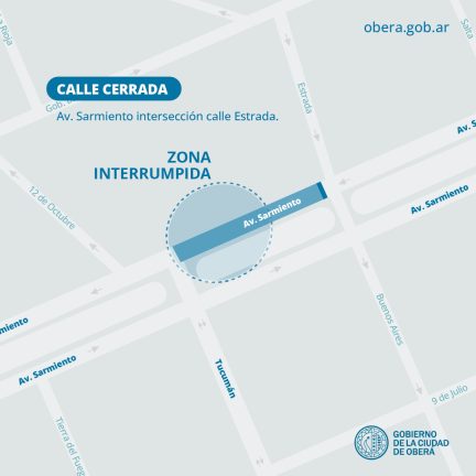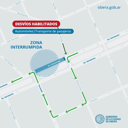 La Dirección de Obra e Infraestructura Urbana del Gobierno de la Ciudad de Oberá anuncia que a partir del miércoles 29 de mayo iniciarán trabajos de reconstrucción de calzada en la Avenida Sarmiento. La obra abarcará el tramo entre calle Estrada y Avenida Tucumán, en la mano que va del centro hacia la autovía, frente a la Parada Unificada “Casa Boldú”.