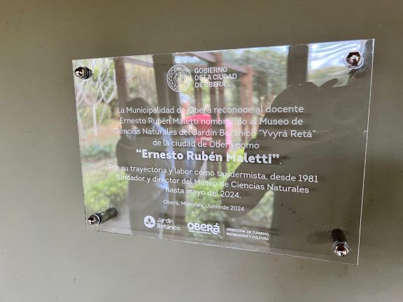 Por parte del Concejo Deliberante, el edil Maximilian Binder, compartió la Ordenanza Nº 3323 Expte N° 082/2024, la cual establece en su Artículo 1°: Nominar “Ernesto Rubén Maletti” al Museo de Ciencias Naturales del Jardín Botánico “Yvyrá Reta” de la ciudad de Oberá.