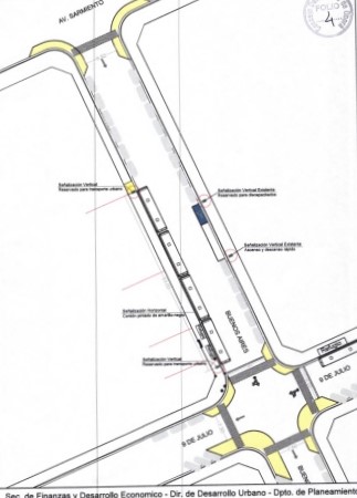 Esta nueva parada, sustituirá a las paradas que se ubican en Av. Sarmiento esquina Buenos Aires y en calle Estrada esquina Av. Sarmiento y contempla realizar las siguientes demarcaciones: