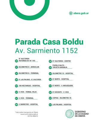 📍Parada de Av. Sarmiento y calle 12 de Octubre (Rentas): esta parada se traslada. Los usuarios deberán dirigirse a la Parada Unificada «Casa Boldu».