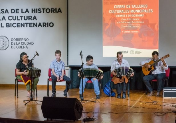 Las actividades comenzaron con la muestra del taller de Guitarra «Semilla para nuevos sueños», que viene funcionando desde el año 2016 en la Casa del Bicentenario y este año contó con más de 20 alumnos, quienes aprenden además de guitarra, canto e instrumentos de teclado, todos recorriendo el folklore argentino destinado a diferentes edades desde los 8 años, seguido del taller de Acordeón y Bandoneón que se da en la Casa de la Cultura por la tarde y formado por niños, jóvenes y adultos.