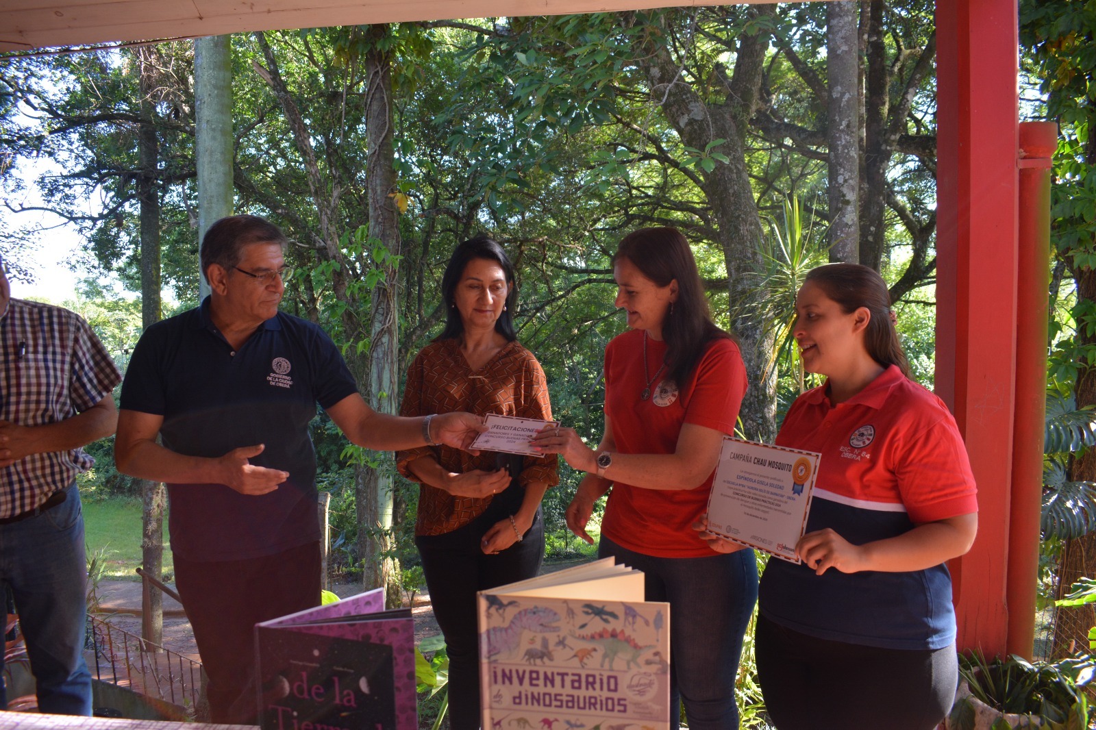Del concurso participaron 18 alumnos del cuarto grado “A” de jornada extendida y recibieron una orden de compra de cien mil pesos que era para el docente, pero deciden donarlo a la institución educativa, además recibieron libros con la temática de lucha contra el dengue y repelentes en aerosol.