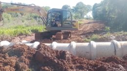 La obra incluyó la colocación de 8 tubos de hormigón de 1 metro de diámetro, necesarios para garantizar un adecuado escurrimiento del agua en un cauce que converge hacia el arroyo Lata.