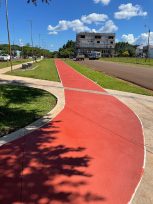 Por su parte, el director de Servicios y Obras Públicas, Fabián Tricoli, se refirió a la demarcación del boulevard central en color rojo, indicando que “se trata de un indicador de uso exclusivo, claramente diferenciado del tránsito vehicular. El rojo mejora la visibilidad, evita confusiones y, además, se vincula con la identidad misionera, asociada a la tierra colorada”.